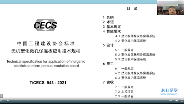 25日上午,中國工程建設(shè)標準化協(xié)會(簡稱:CECS)標準《無機塑化微孔保溫板應(yīng)用技術(shù)規(guī)程》宣貫會以線上會議的形式成功舉辦。