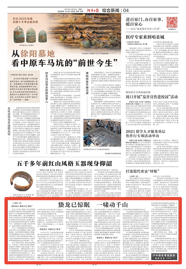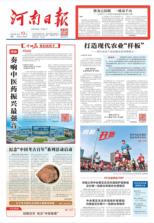 2021年4月19日,《河南日報》頭版報眼位置發(fā)表題為《蟄龍已驚眠 一嘯動千山 ——記鄭州工大科技外墻保溫材料創(chuàng)新之路》的文章,全方位、多層次、多角度報道了我公司“瞄準行業(yè)痛點,勇登科技高峰”的創(chuàng)新發(fā)展之路。