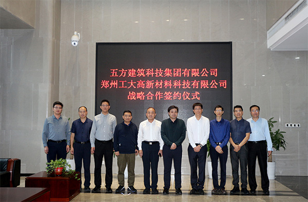 9月25日,鄭州工大高新材料科技有限公司(以下簡稱:工大科技)與五方建筑科技集團(tuán)有限公司(以下簡稱:五方建筑)戰(zhàn)略合作簽約儀式在鄭州大學(xué)建筑科技研究中心舉行。工大科技董事長趙振波和五方建筑董事長崔國游代表雙方簽約。